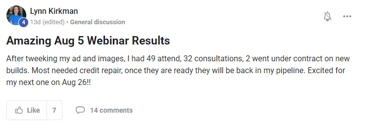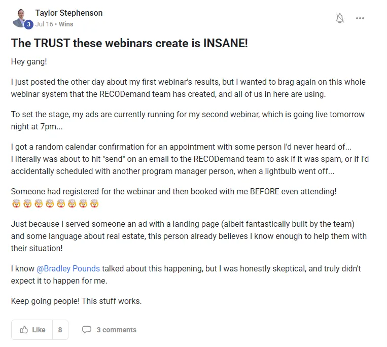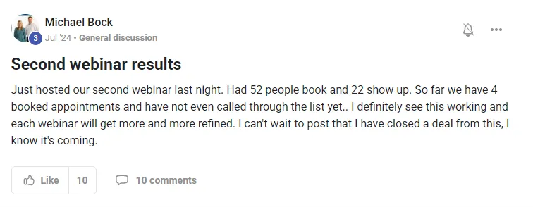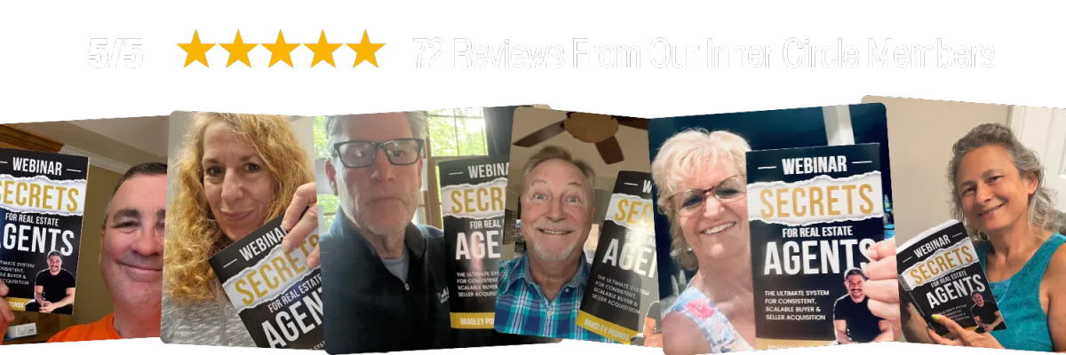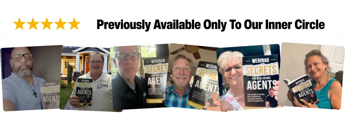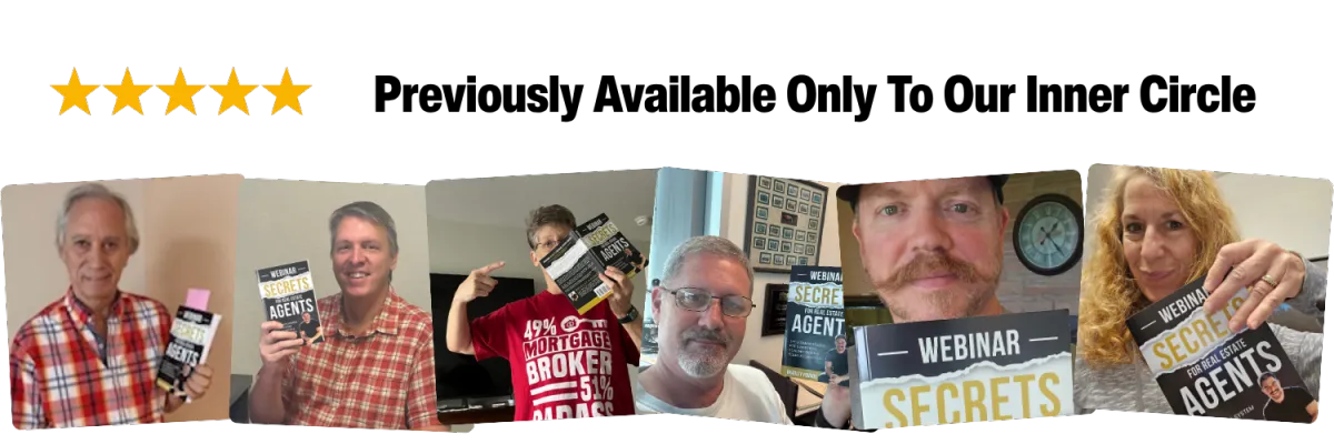 Simply put: it’s the ultimate playbook for replacing cold calls, referrals, and outdated prospecting with one weekly webinar that fills your pipeline with buyers and sellers who already trust you.